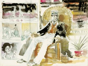 Hugo Pratt being a good Venetian, the sea is an integral part of his imaginative world. This subject is tied to Pratt’s love of travel and of travel writers like Robert Louis Stevenson, Joseph Conrad, Herman Melville, Jack London, Ernest Hemingway…