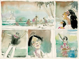 Pratt, who loved to quote Montaigne’s “One should always have one’s boots on and be ready to leave,” puts Treasure Island, Stevenson’s masterpiece, in picture form.