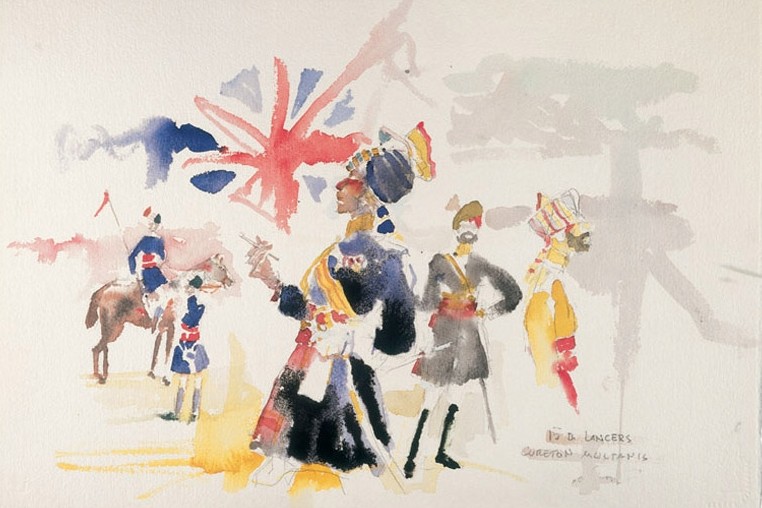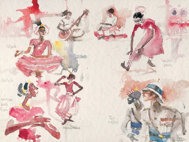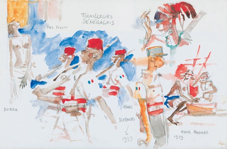 En sus acuarelas se observa, no menos que en sus famosos cuadros, la fascinación que ejercía sobre él la belleza de los uniformes, con sus colores y sus características. Todas estas imágenes, las banderas, los escudos de armas e insignias de los ejércitos italianos, británicos o franceses, más que los fusileros senegaleses, representan un testimonio excepcional de lo que Pratt llamaba “la cultura militar”.
