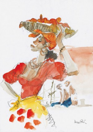 Sus magníficas acuarelas sobre este inagotable tema están estrechamente relacionadas con sus viajes. Durante toda su vida de artista, Pratt rindió homenaje a mujeres soñadas y a mujeres realmente conocidas, a chicas con las que se topó en islas lejanas o a legendarios personajes sugeridos por la literatura y el cine, como Pandora, Louise Brooks, Hipatia, Boca Dorada y Shanghai Lil.