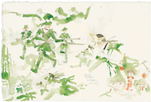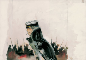 On retrouve dans ses aquarelles, tout autant que dans ses célèbres planches, la fascination qu’exerçait sur lui la beauté des uniformes, avec leurs couleurs et leurs caractéristiques. Toutes ces images, les drapeaux, les écussons et les insignes des armées italiennes, anglaises et françaises, sans compter les tirailleurs sénégalais, représentent un témoignage exceptionnel de ce que Pratt appelait “la culture militaire”.