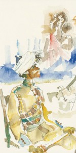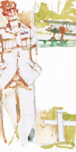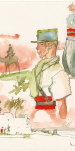 On retrouve dans ses aquarelles, tout autant que dans ses célèbres planches, la fascination qu’exerçait sur lui la beauté des uniformes, avec leurs couleurs et leurs caractéristiques.